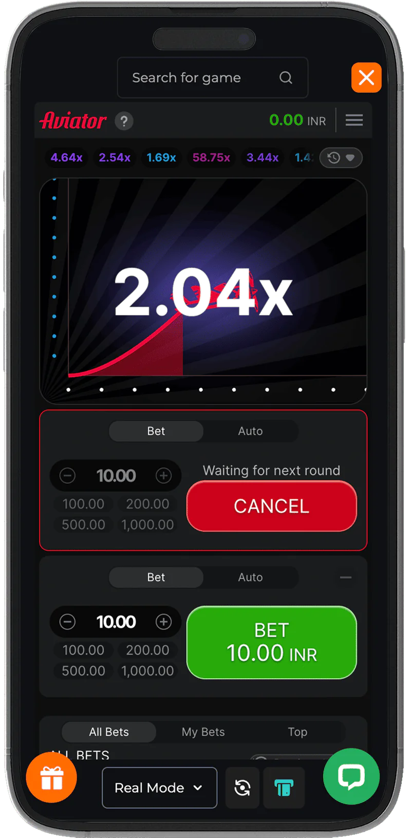 - The 9winz Aviator app allows players to place free bets in demo mode