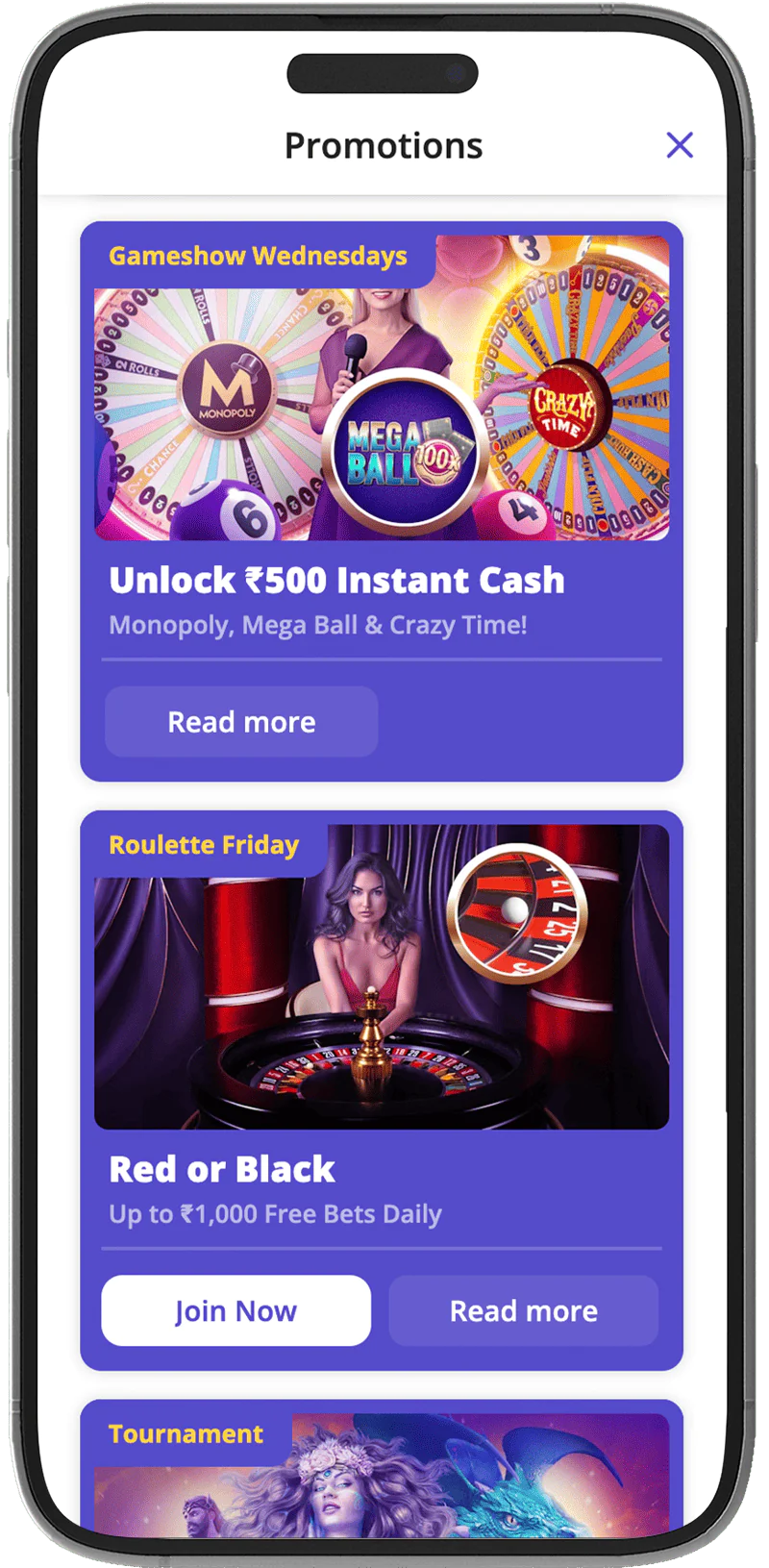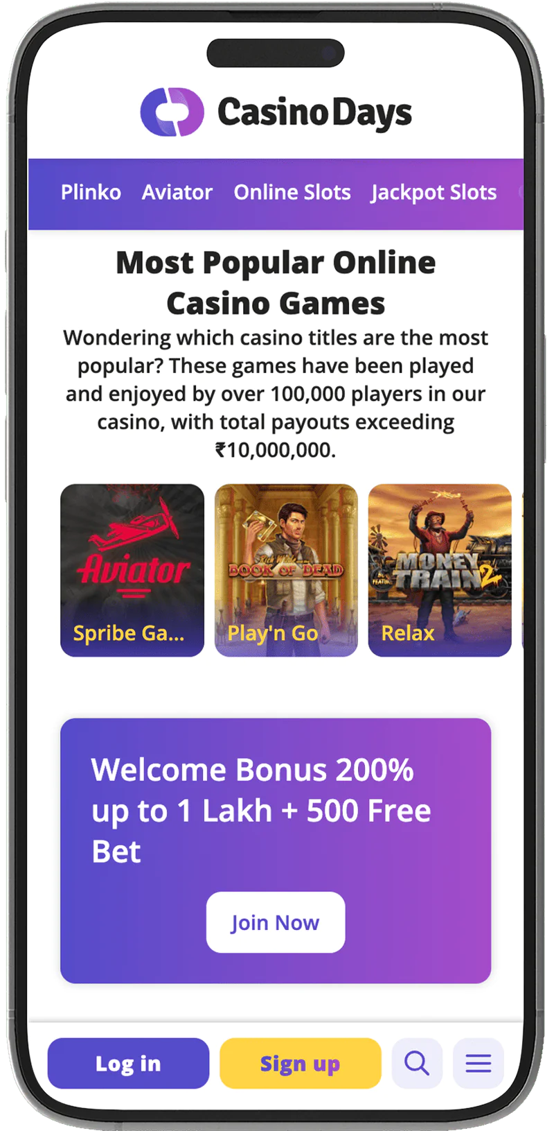 Casino Days for Android and iOS is a free program for gamblers. Through it, you can play slots, try instant games, and play against live dealers. Adaptation to the Indian market lies both in the legal status and in the support of popular banking tools for replenishing the account/withdrawing winnings. The app is constantly improved, making the program suitable even for advanced smartphone models. We have tested the software for security: user data and monetary operations are reliably protected by SSL.
