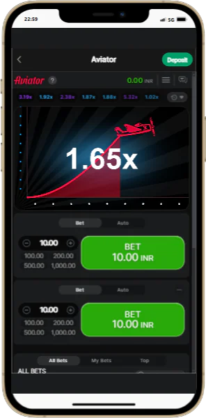 A trustworthy Indian brand created an Aviator app that is nearly comparable to the original website. According to our observations, the interface incorporates all of the most important menus and categories: Live Events, Upcoming Matches, Promotions, Top Parlays, and Aviator.