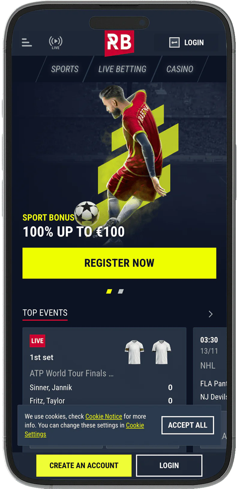 Study the Rabona application screenshots prepared by our author before downloading the software to understand what features and capabilities will be available to you. Familiarize yourself with the design, layout of key elements, and other features to see what the casino looks like in the app.